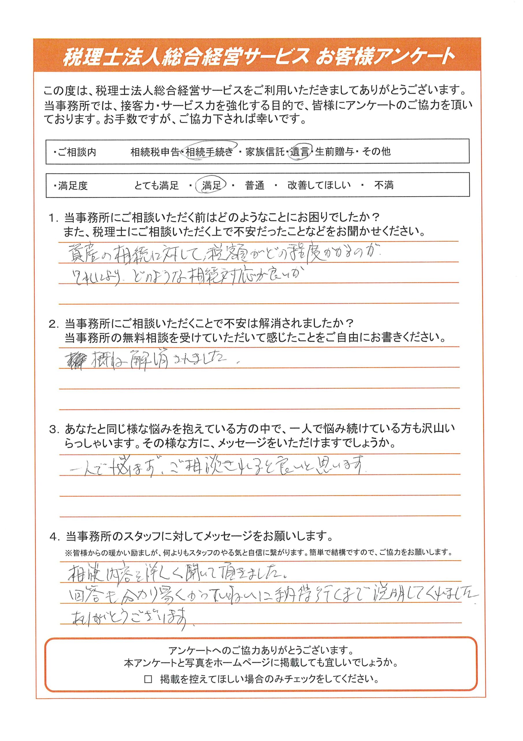 遺言をされたお客様の声