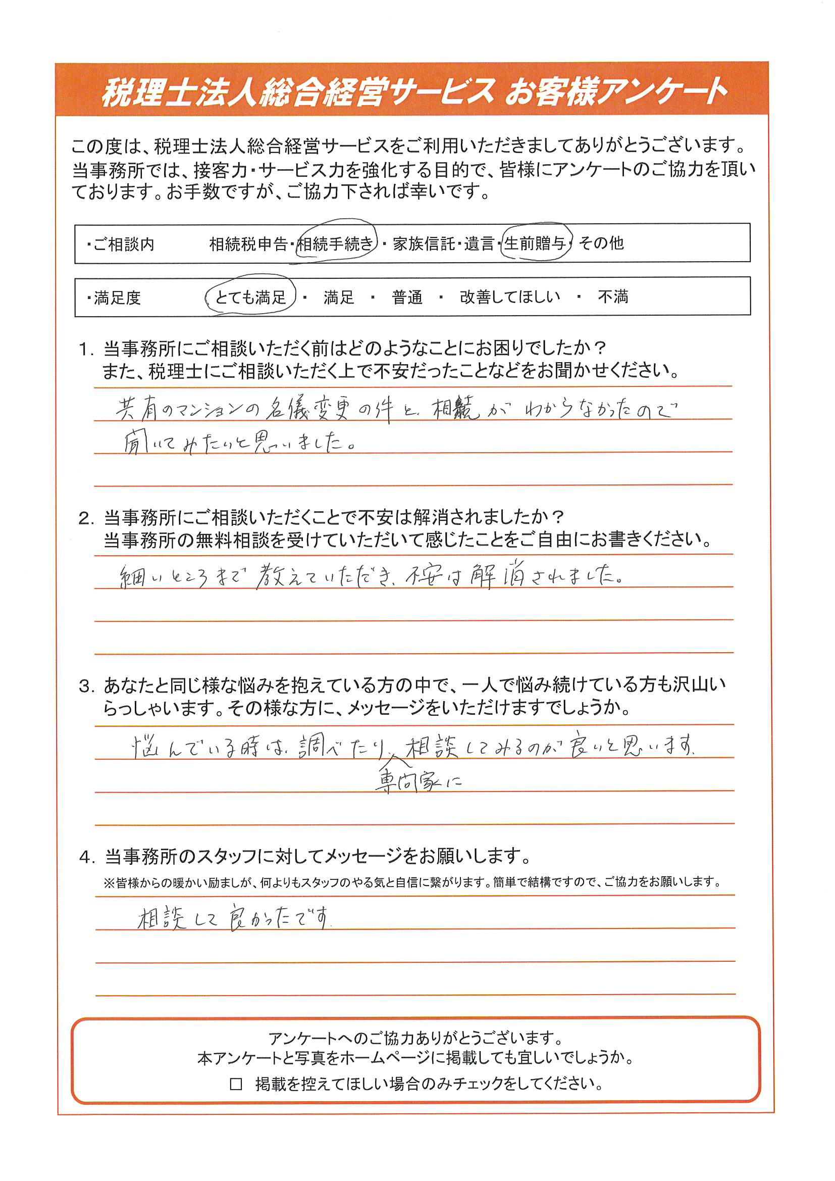 共有のマンションの名義変更の件と、相続がわからなかったので聞いてみたいと思いました。