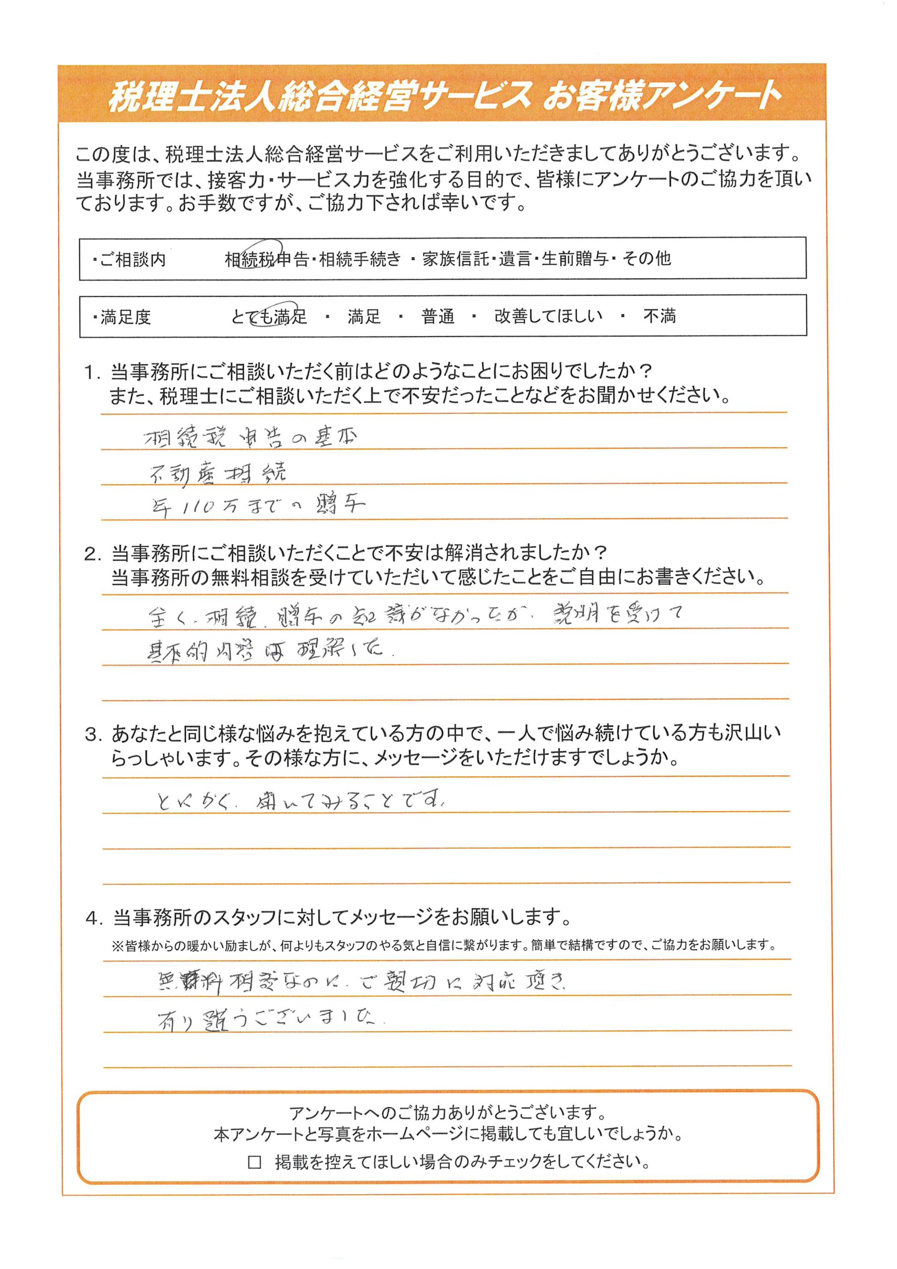 全く、相続、贈与の知識がなかったが、説明を受けて基本的内容は理解した。